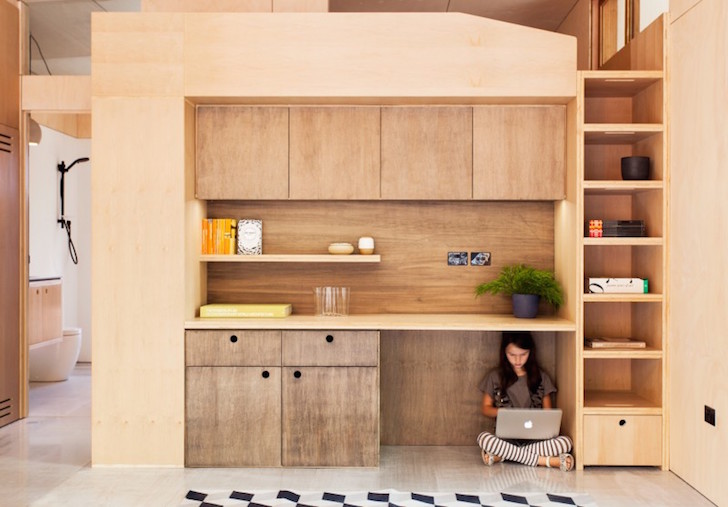Garázsból lakás, modern kör fülkékkel